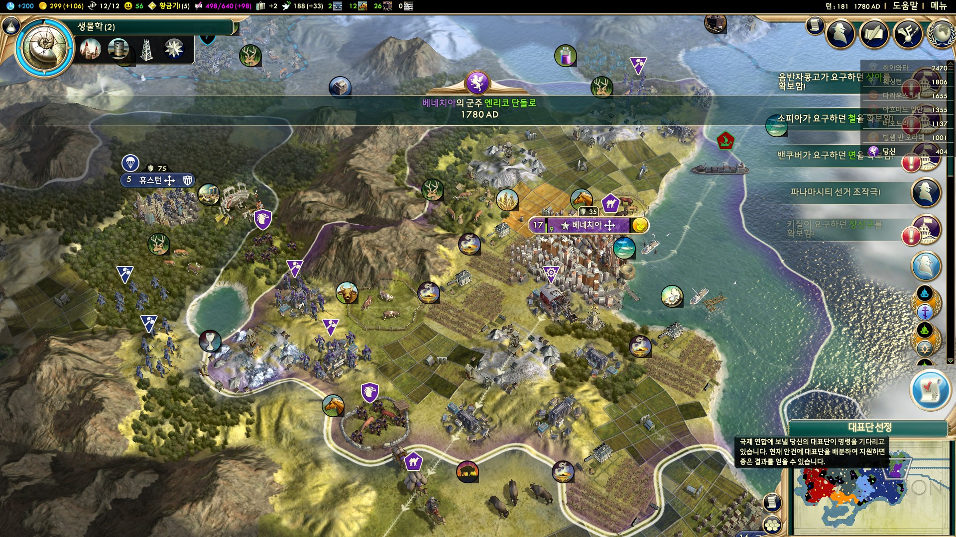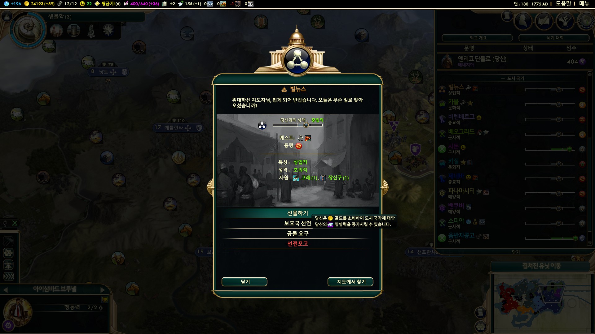갑자기 제가 자신의 동맹 도시국가를 싹다 뺏어가니 이상한 낌세를 느끼고