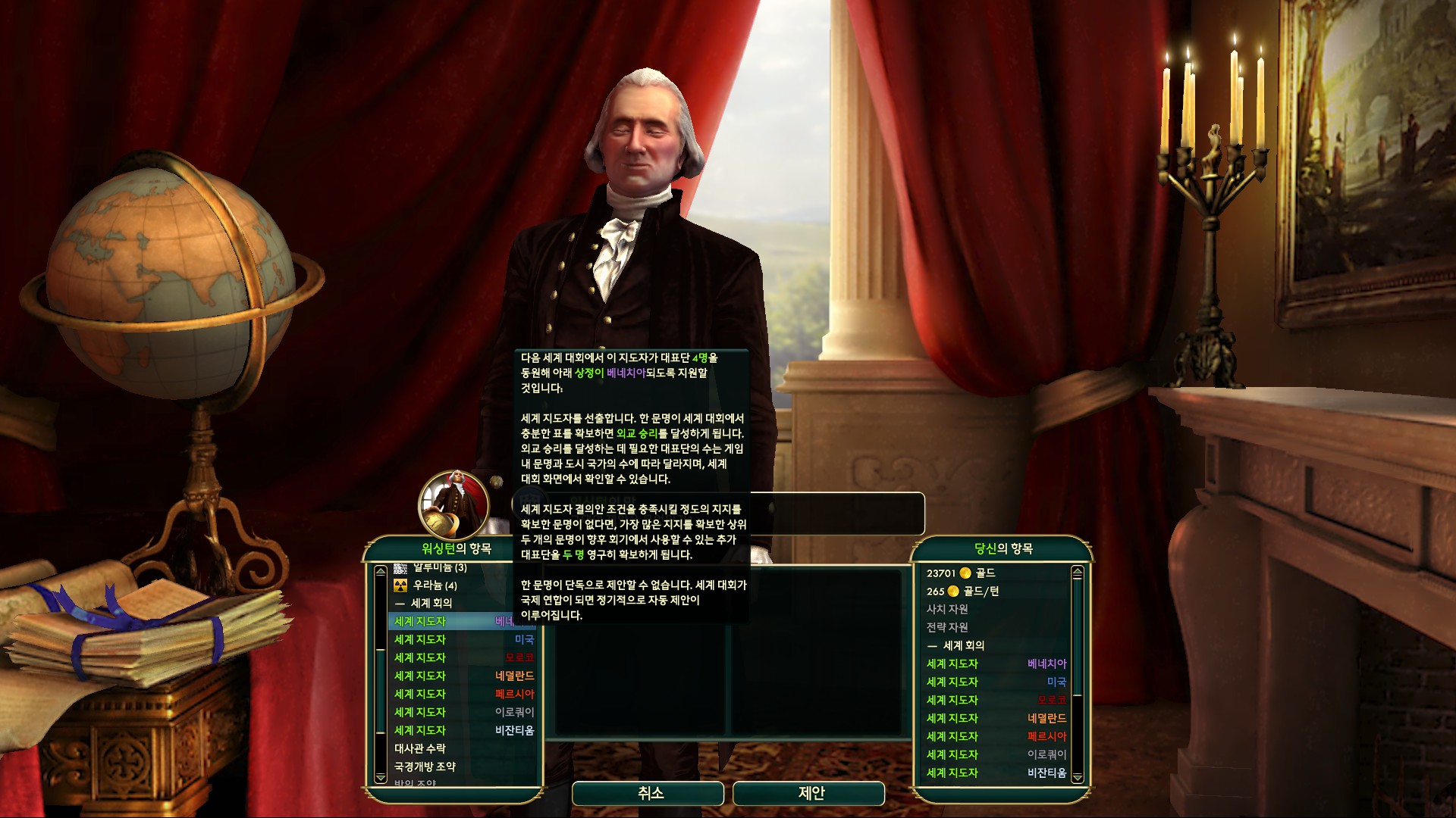 좋아!! 이걸로 저에게 세계지도자를 투표할 국가를 한 곳 확보했습니다!