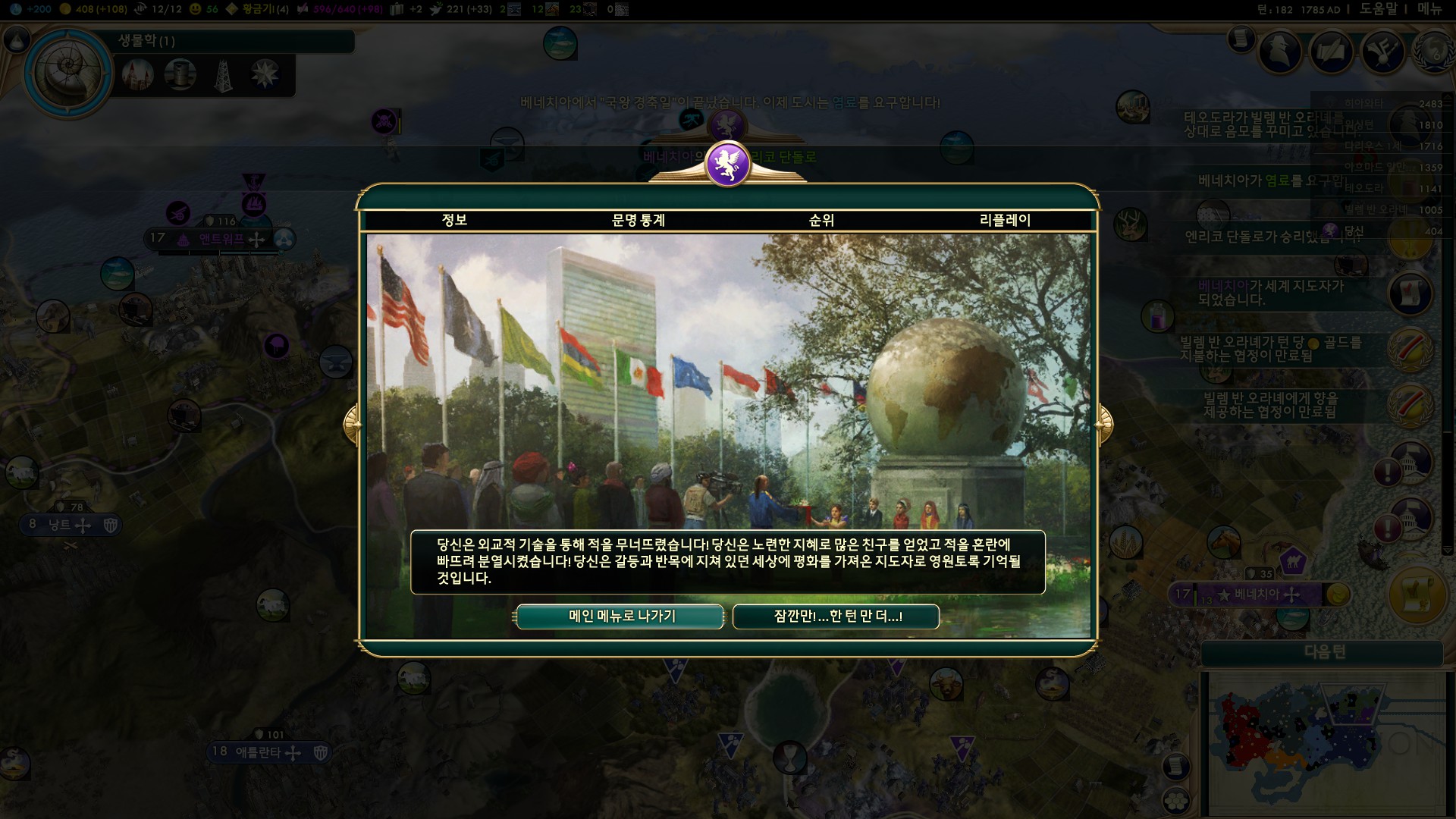 다음 국제연합 까지 남은턴 3턴이 모두지나가고 다시 6턴으로 리셋이 되었습니다.