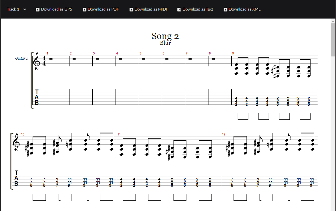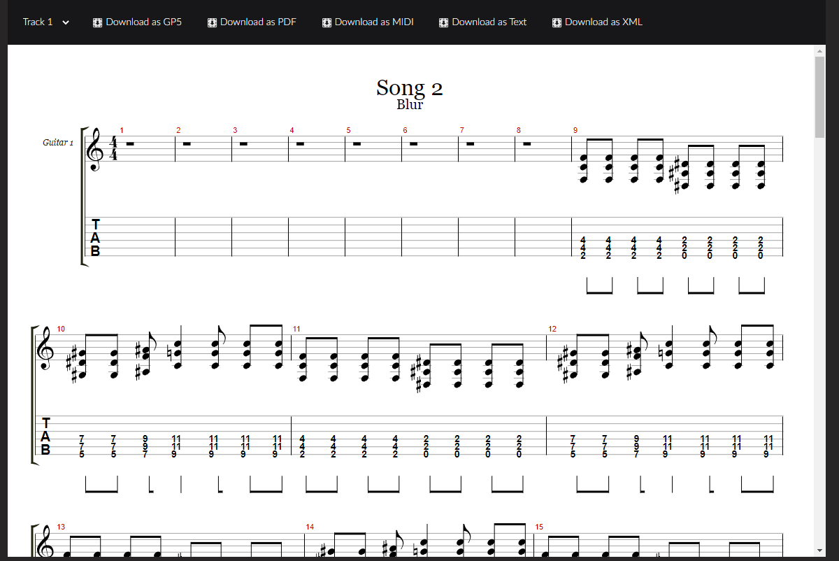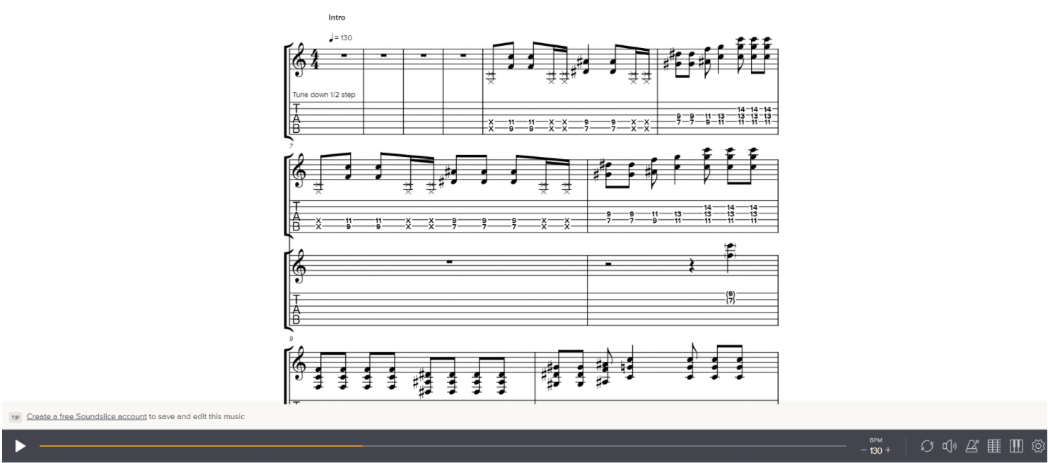 5.기타프로 파일이 열리고 악보가 보이게 됩니다! 다만 이 사이트에서는 재생을 따로 시키실 수가 없고