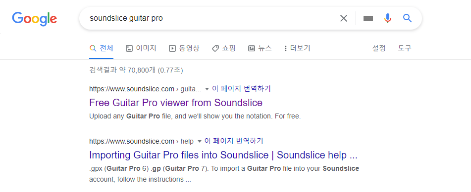 1.구글에 들어가셔서 'soundslice guitar pro'라고 검색해주세요.