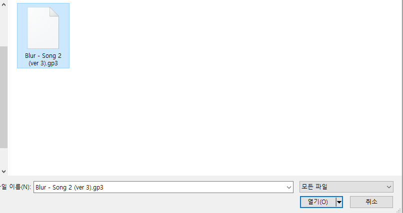 가지고 있으신 기타프로파일을 클릭하고 열기를 눌러주세요. 저는 blur의 song2를 열어보겠습니다.