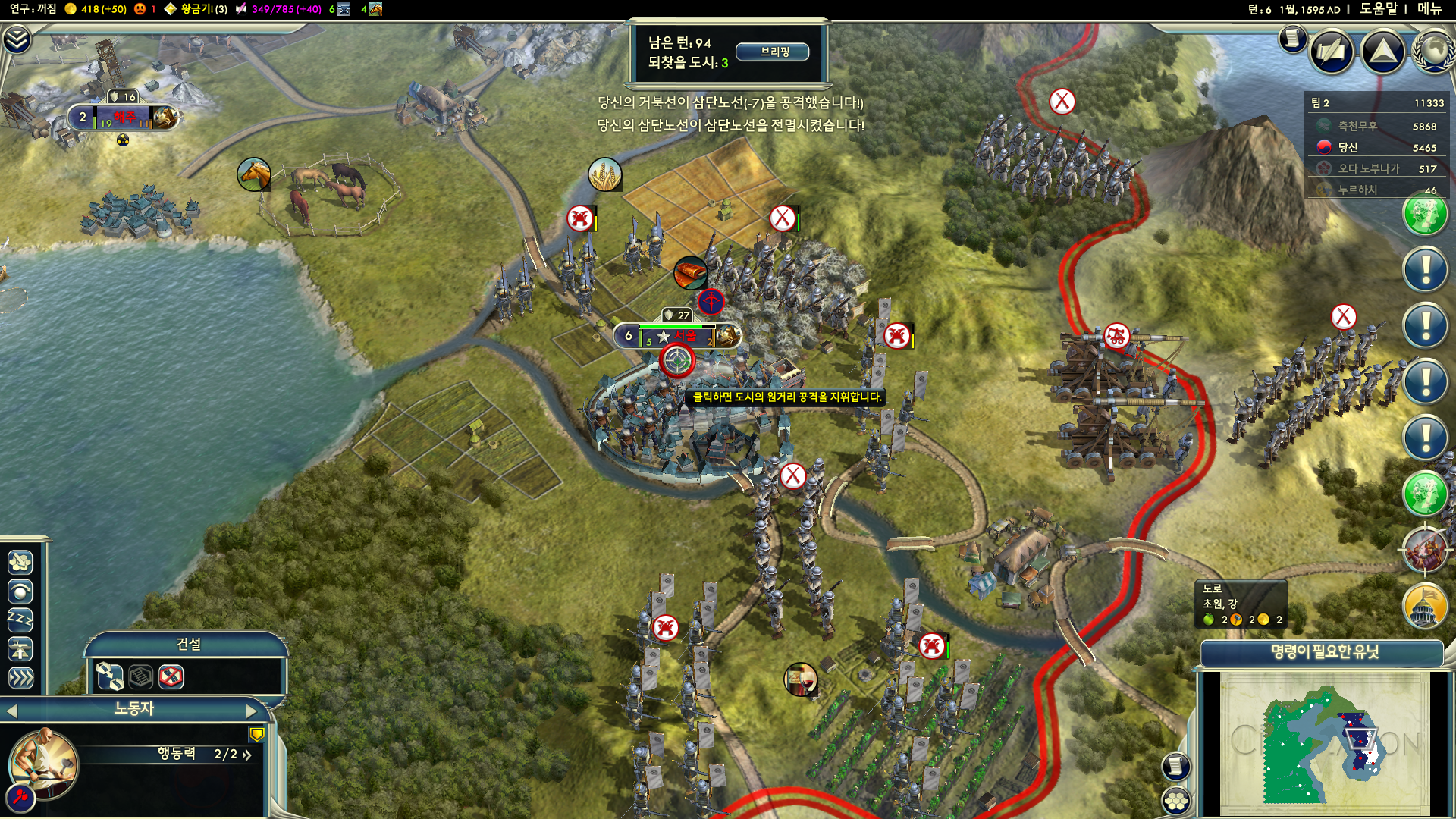 1턴만 더 버티면 성벽이 완성되는데 그럼에도 운명을 달리할 것 같네요.