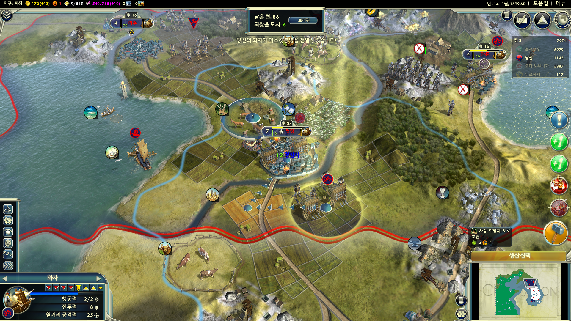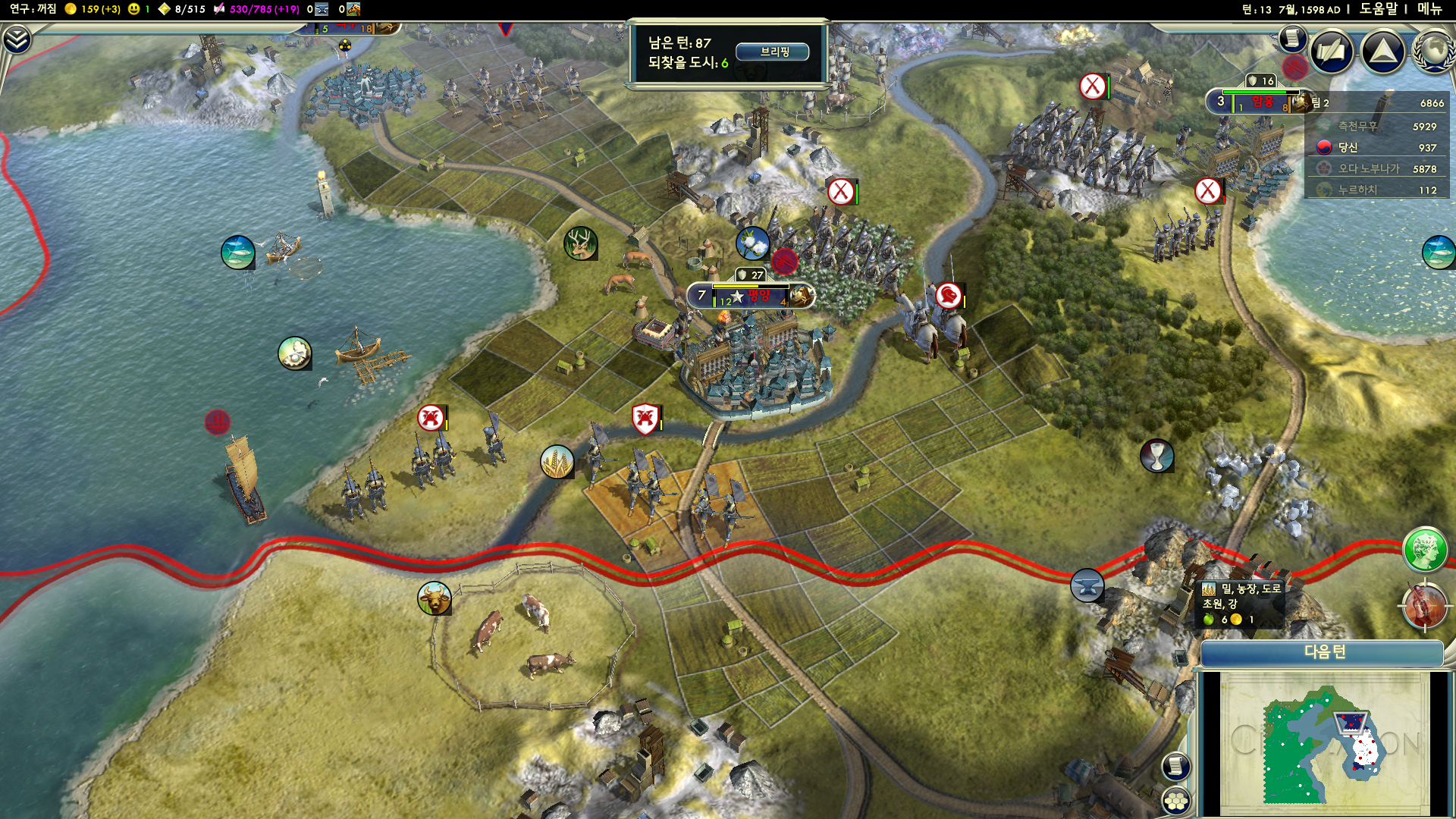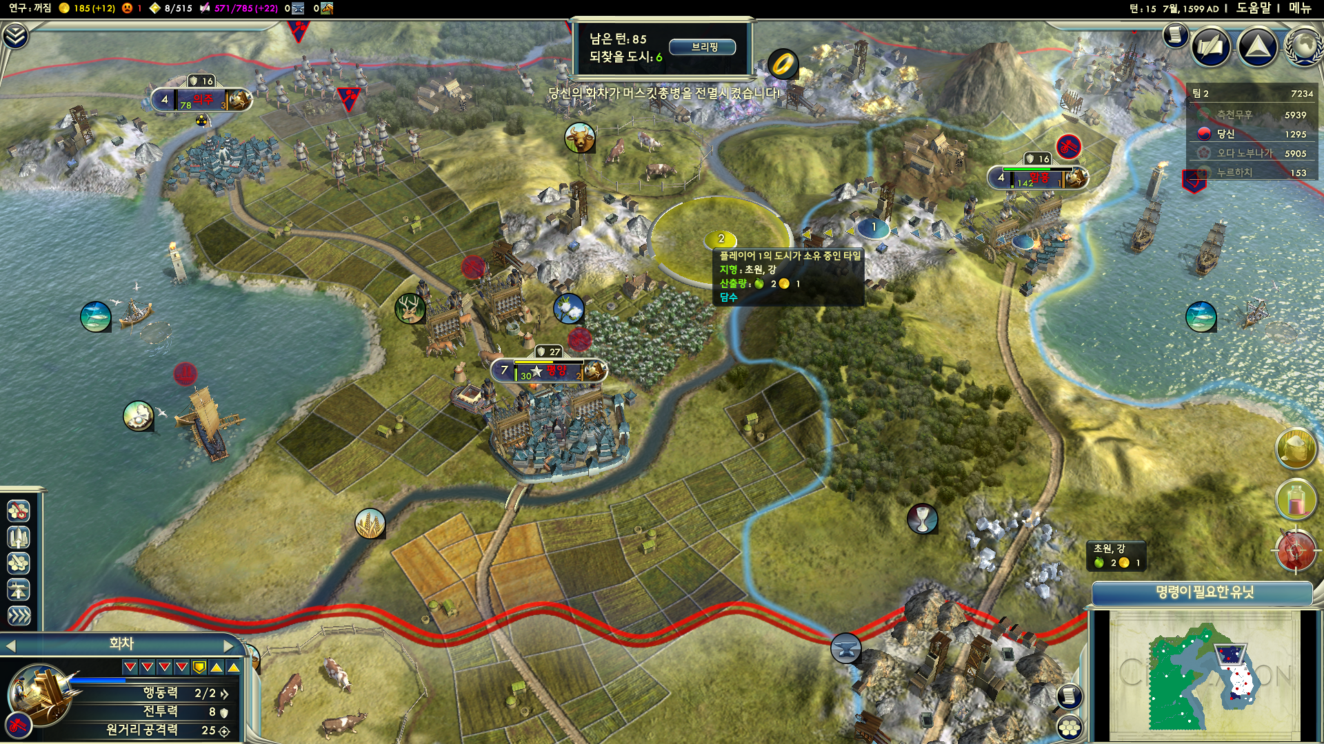 땅은 거의 다 먹혀버렸지만.. 이제부터 화차를 열심히 모아서 점점 쳐내려갈 생각입니다.